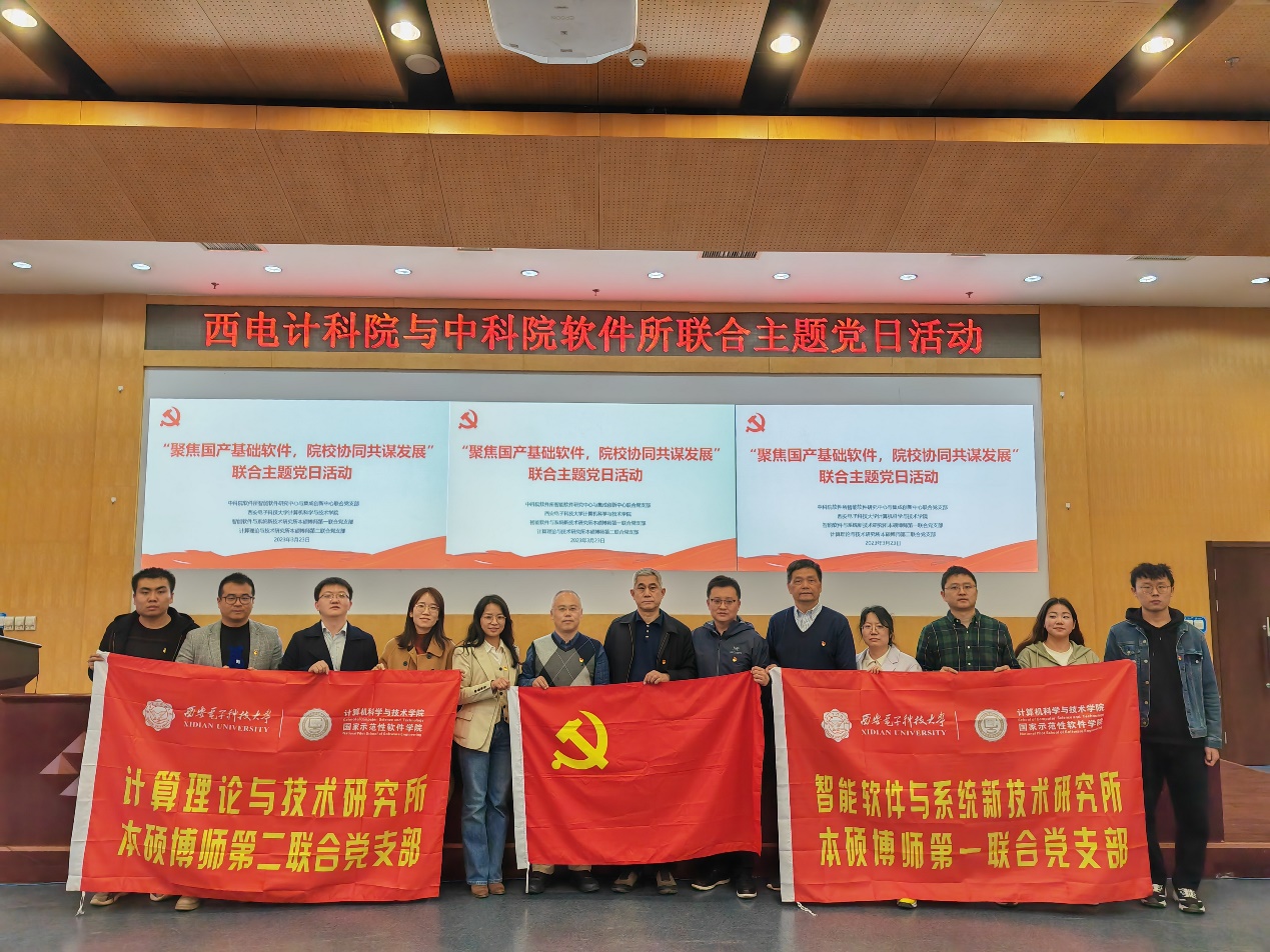 (通讯员 同榛)为学习贯彻党的二十大精神,响应习近平总书记“强化国家战略科技力量,提升国家创新体系整体效能”的号召,加强重大科学问题研究,加大共性科学技术破解,加深重点战略科学项目协作,3月23日下午,由必赢242net官网党委书记李青山带队,正处级组织员张卫东、智能软件与系统新技术研究所本硕博师第一联合党支部书记王璐、计算理论与技术研究所本硕博师第二联合党支部书记于斌及学生党员代表等一行9人赴北京与中科院软件所智能软件研究中心与集成创新中心联合党支部联合开展“校企携手共建,弘扬科技创新”主题党日活动,旨在发挥党建引领作用,推进党建与业务深度融合,为实现国产软件自主可控展开全方位的深度合作,提升人才培养质量,充分发挥双方优势实现共赢。中科院软件所党委副书记、纪委书记李衡,纪委副书记、纪检监督室副主任(主持工作)黄克翠,中科院软件所智能软件研究中心与集成创新中心联合党支部书记吴敬征以及支部党员代表参加了活动。