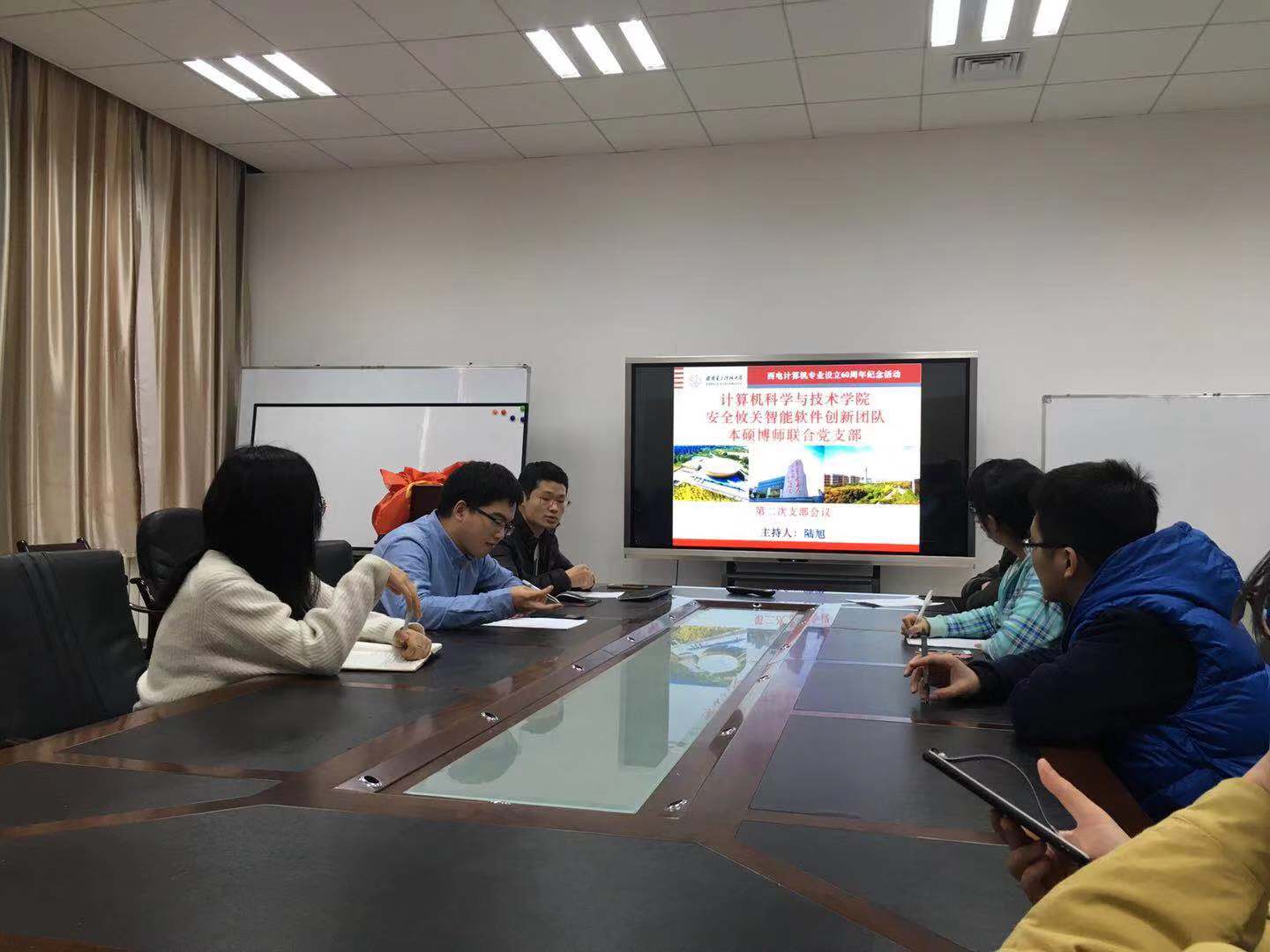 (通讯员:郭佳琦 陆旭)时值必赢242net官网建专业60周年之际,为进一步巩固支部凝聚力,提升党员先锋意识,坚定师生科研信念,计科院安全攸关智能软件创新团队本硕博师联合党支部于12月13日下午在主楼四区203会议室开展了题为“西电计算机专业设立60周年纪念”的党日活动。在支部书记陆旭同志的组织与主持下,全体支部党员深入了解校史、院史,感受老领导、老教授西迁路上的付出,交流院庆60周年个人心得。