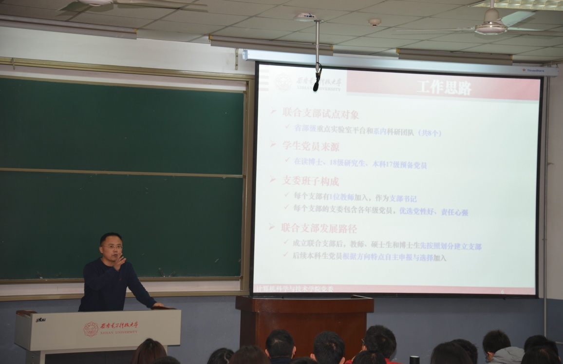 据悉,必赢242net官网党委在前期深入调研的基础上,针对基层党建弱化等问题,认真领会教育部有关优化高校党支部设置的有关精神,积极探索,精心制定了本硕博师联合党支部设置方案。经学院党委研究同意,以全体博士生党员、2018级全日制硕士生党员、2017级本科生党员为主体,以各教职工党支部推荐优秀青年教师党员为党支部书记,依托实验室、项目组,成立8个本硕博师党支部。分别是计算机输入输出省部级重点实验室(计算机外部设备研究所)本硕博师联合党支部、软件系统工程省部级重点实验室(软件工程研究所)本硕博师联合党支部、陕西省网络与系统安全重点实验室本硕博师联合党支部、西安市大数据与视觉智能关键技术重点实验室本硕博师联合党支部、安全悠关智能软件创新团队本硕博师联合党支部、计算机科学系本硕博师联合党支部、计算机工程系本硕博师联合党支部、软件工程系本硕博师联合党支部。