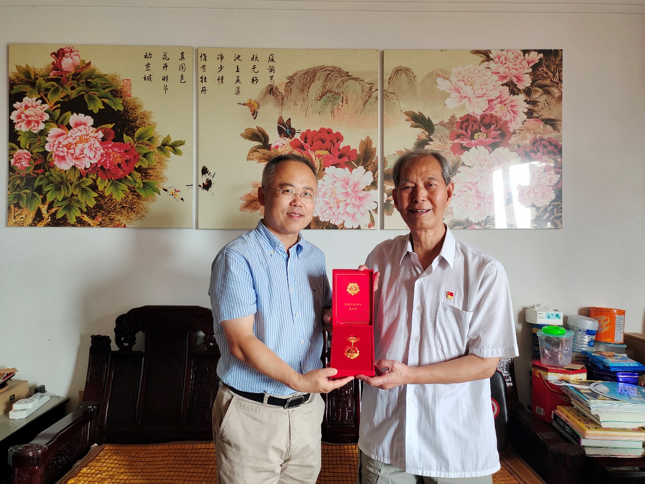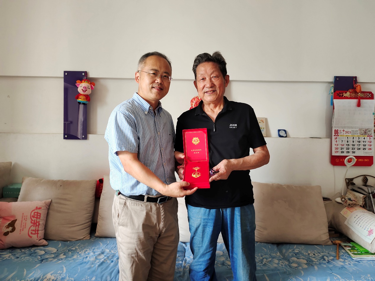 张卫东慰问于崇标老师并送上“光荣在党50年”纪念章