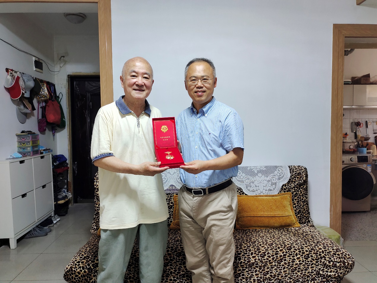张卫东慰问上官仪老师并送上“光荣在党50年”纪念章