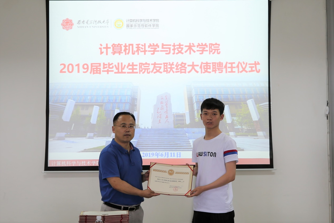 学院在2019届毕业生中共聘任联络大使31人,包括20名本科生、10名硕士研究生和1名博士研究生,实现了学院全部班级941名本科生、445名硕士研究生与15名博士研究生的全覆盖。毕业后,联络大使将成为院友会平台建设的重要力量,学院也会秉承终生服务院友的理念,持续为院友提供高质量优质服务,共同搭建好属于全体西电计算机人的精神家园。