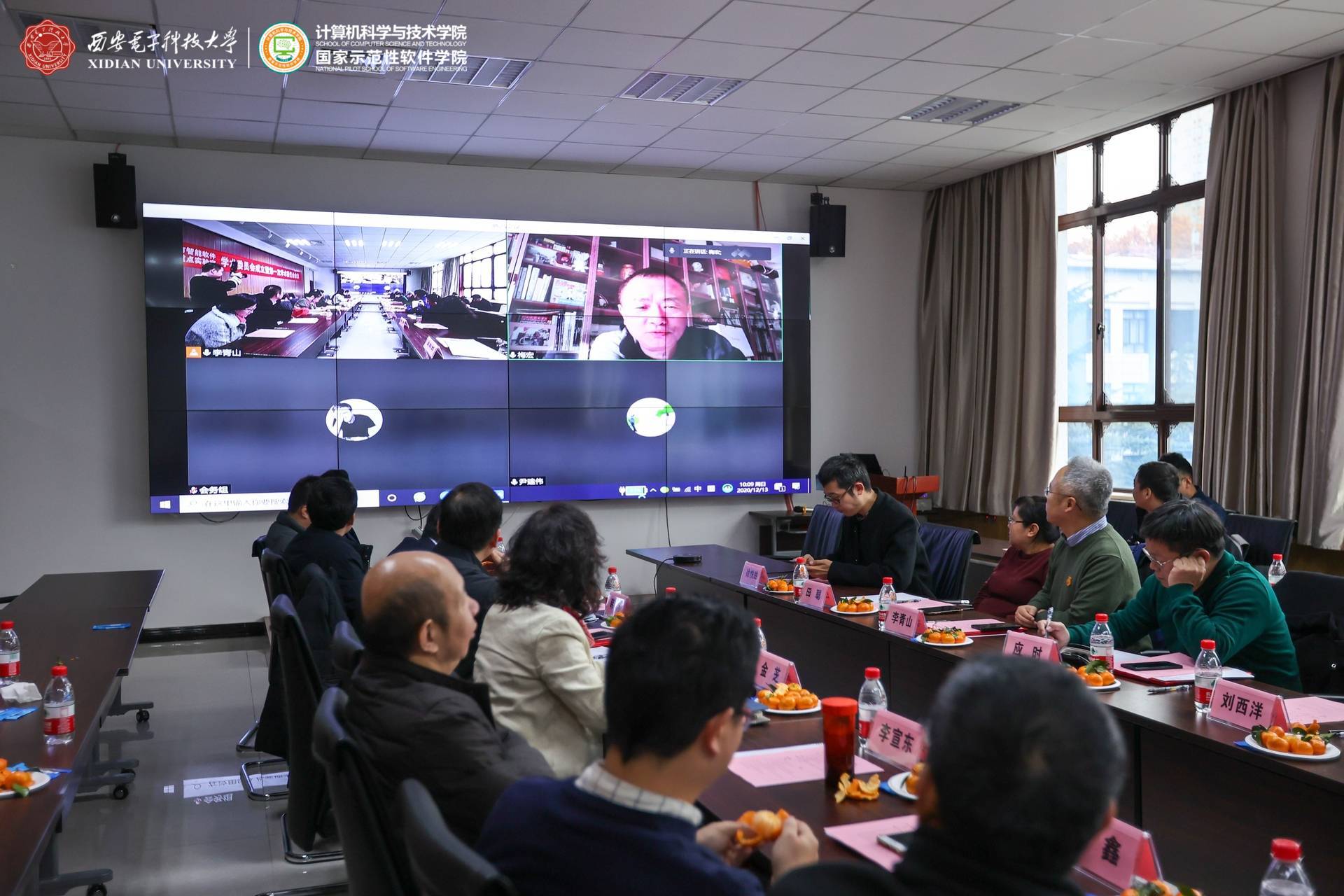 西安市智能软件工程重点实验室学术委员会成员通过线上线下共同参与了此次会议。实验室学术委员会主任由中国科学院院士、航天五院副院长、“嫦娥五号”探月工程总设计师、必赢242net官网名誉院长杨孟飞院士担任,学术委员会首席顾问由中国科学院院士、军事科学院副院长、CCF理事长梅宏院士担任,实验室学术委员会副主任由CCF系统软件专委会主任、北京大学金芝教授担任。实验室学术委员会成员还包括CCF软件工程专委会主任、南京大学李宣东教授,重庆邮电大学校长高新波教授,CCF服务计算专委会主任、浙江大学必赢242net官网副院长尹建伟教授,CCF软件工程专委会副主任、复旦大学必赢242net官网副院长彭鑫教授,CCF软件工程专委会常委、武汉大学应时教授,湖南省复杂系统软件工程重点实验室副主任、国防科技大学毛新军教授,中科院软件所副总工程师、智能软件中心主任武延军研究员,中航工业集团软件首席科学家、集团计算技术研究所副所长韩炜研究员,必赢242net官网研究生院副院长、计算理论与技术研究所所长田聪教授,必赢242net官网软件工程研究所所长刘西洋教授,以及李青山教授。实验室学术委员会委员共15人,其中校外委员11人,校内委员4人。本次会议现场参会的委员有11人,在线参会的委员有杨孟飞院士、尹建伟教授2人,教育部软件工程专业教指委委员、必赢242net官网副校长王泉教授与CCF软件工程专委会副主任、华为软件分析实验室主任王千祥教授两位因临时有事缺席。