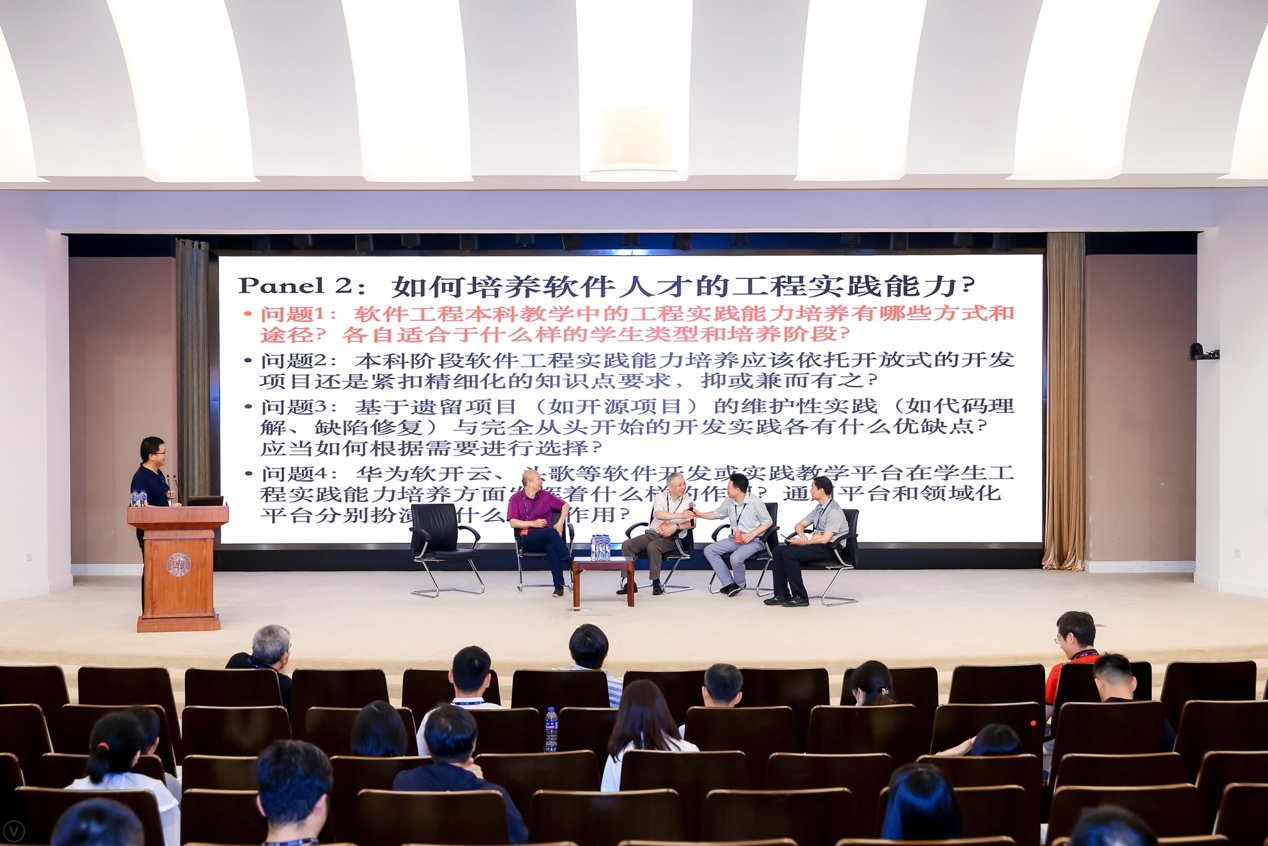 在特邀报告环节中,张莉教授带来了题为“借鉴工程教育认证理念建设一流软件工程实践课程”的报告,探讨了计算机/软件工程专业实践课程的设计和建设思路、以及学生解决复杂问题的综合能力培养。应时教授讨论了“软件架构课程的教学与软件架构人才的培养”,分享了如何培养和提升在校学生和从业架构师的架构设计与创新能力。游依勇院长带来了“华为软件人才能力提升实践分享”,介绍了华为公司在整体提升软件人才能力方面的一些实践和思考。彭鑫教授带来了题为“基于实践视角的软件工程课程知识体系思考”,从课程实践的视角出发,以学生可切实掌握的工程能力为基础,对软件工程课程知识点的设置进行了重新思考。