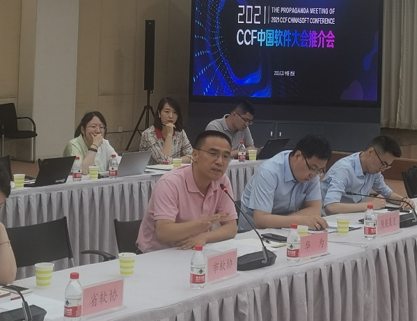 大会程序委员会主席、组织委员会主席李青山首先从大会简介、筹备历程、举办方案、内容规划、协同体系、待议内容等六个方面详细介绍了大会的情况。CCF中国软件大会已成功举办十九届,现已成为中国软件界的年度盛会。2021 CCF中国软件大会由CCF软件工程专委会、CCF系统软件专委会、CCF形式化方法专委会、必赢242net官网共同承办,西安市高新区管委会等作为支持单位,预计将吸引软件领域学术界、工业界、教育界超过2000名代表参会,将继续成为软件及相关领域行业学术分享、技术探索、教育研讨、学科建设、人才培养等方面一年一度全国性的综合交流与促进平台。在协同办会体系部分,李青山诚挚地邀请高新区的相关企业、协会以协办单位、支持单位或者赞助商的角色参与大会筹办,以此为契机深度参与全国软件领域学术、技术、人才的交流。李青山还重点向推介会参会代表介绍了正在策划中的大会会前预热活动,包括软件专家走进企业、软件企业走进高校、政用产学研合作交流论坛,中国软件开源创新大赛等赛事,希望高新区软件企业可以积极参与以上活动,持续融入大会筹办过程。