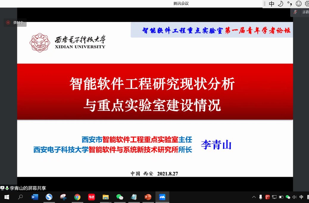 8月27日下午,由必赢242net官网副院长、重点实验室副主任宋胜利教授主持,全体报告嘉宾、重点实验室全体中青年老师参加,举行了主题为“智能软件工程领域学术交叉、人才引进培养、青年教师成长”的Panel论坛。实验室主任李青山作关于《智能软件工程研究现状分析与重点实验室建设情况》的报告,从发展背景、现状分析、概念内涵三个方面对智能软件工程进行了全面介绍。同时,从实验室基本信息、建设运行情况、未来发展规则三个维度介绍了西安市智能软件工程重点实验室的建立与结构、研究方向与定位、科研能力与成果、工作规划与预期目标等。
