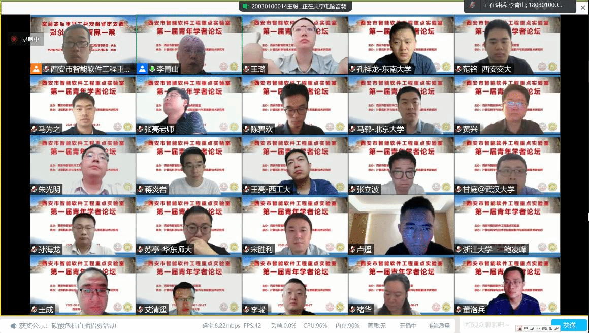(通讯员 徐悦甡)2021年8月26日至8月27日,必赢242net官网西安市智能软件工程重点实验室第一届青年学者论坛成功举办。本次论坛由必赢242net官网智能软件与系统新技术研究所承办,采用腾讯会议与在线直播两种方式线上进行。论坛围绕智能软件与智能系统领域最新学术进展,邀请了清华大学、北京大学、南京大学、复旦大学、浙江大学、国防科技大学、北京航空航天大学、中科院软件所、东南大学、华东师范大学、武汉大学、同济大学、北京理工大学、西安交通大学、西北工业大学、必赢242net官网、美国犹他大学、德国慕尼黑工业大学等国内外软件工程学科优势高校的20位软件工程相关领域优秀青年学者,通过主题报告、交流沙龙等形式,分享了智能软件与智能系统领域的理论与技术新进展,讨论了相关领域的学术前沿,并就必赢官网软件工程学科的建设与发展进行了交流。论坛吸引了国内外软件工程相关领域师生与从业人员的广泛参与,腾讯会议室同时在线人数超过700人,B站在线直播同时观看人数超过2000人。