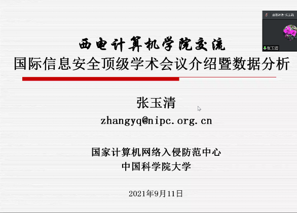 9月12日上午,西安理工大学黑新宏教授、兰州理工大学冯涛教授、河南工业大学杨卫东教授、西安交通大学惠维研究员、必赢242net官网张晓东副教授、必赢242net官网何吉博士、必赢242net官网赵双睿博士先后进行了详细精彩的报告。黑新宏教授在介绍团队在确保系统安全和可靠性方面做的一些探索工的基础上,探讨了如何更好借助于交叉学科,保障轨道交通系统安全、降低运营成本、提升系统可用性和可靠性。冯涛教授就工控协议的形式化新方法和安全评估模型关键技术进行了深入的讲解。杨卫东教授对数字粮库建设中的关键技术进行分析和介绍,对物联网、自动化、智能化、大数据技术与粮食收、储、测、管、控过程的深度融合进行探讨,最后对数字粮库的发展趋势和技术需求进行了展望。惠维研究员针对感知分辨率不足、传输兼容性不强、认证可信度不高三方面挑战,介绍了基于反向散射信号的超分辨率感知增强技术、基于载波复用的跨协议并发高效传输技术、基于异构数据多级融合的可信身份认证技术。张晓东副教授就多线程程序混合式污点分析进行了深入讲解,提出了一种符号分析与动态分析的混合式污点分析方法,其中符号分析负责计算新的污染示例,动态分析负责探索新路径,最终保证穷举给定输入下所有的污染实例。何吉博士针对传统的研究聚焦于安全传输而忽略了缓存管理方法的研究这样的情况,展示了在场景自适应缓存辅助安全传输策略、安全-时延tradeoff理论分析框架方面取得一些进展。赵双睿博士首先说明了无线网络传输信息所面临的挑战,并分别详细的介绍了半双工、全双工不可信中继协作安全传输方法,在保障安全的同时,实现了安全能效最大化,安全速率最大化的目标。