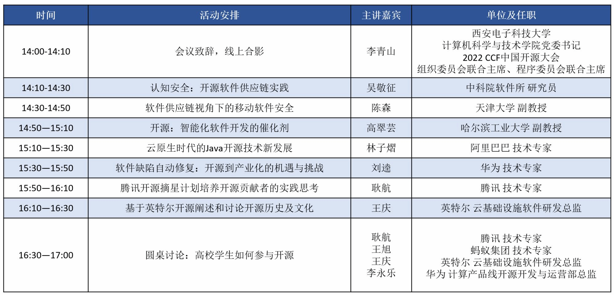本次活动邀请了来自学术界和开源社区知名机构的专家分享开源生态技术和社区实践经验,包括中科院软件所、天津大学、哈尔滨工业大学、阿里巴巴、华为、腾讯、英特尔等高校与企业。各位报告人将共话高校开源文化建设,宣传推广开源文化、开源技术、开源项目和开源应用,举行开源圆桌论坛,并期待与包括西电师生在内的全国高校师生一起促进本土开源教育与开源技术的发展。欢迎西电和其他高校师生关注并参与本次活动!
