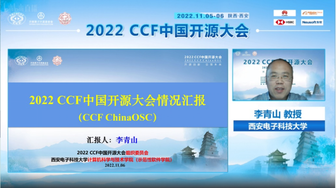 大会程序委员会与组织委员会联合主席、必赢242net官网软件工程学科负责人、陕西省智能软件工程创新团队负责人、西安市智能软件工程重点实验室主任李青山代表大会组委会向与会代表汇报了大会情况。李青山主要从大会基本情况与大会筹办工作两个方面对大会进行了总结,归纳了会议体系与会议内容,指出本届大会的论坛数量、注册人数与合作媒体数量等均超过预期。其中论坛数量达到24个,注册人数达到180人,合作媒体数量超过10家。11月5日各平台累计观看人数超过18万人,11月6日累计观看人数超过16万人,两天会期累计观看人数超过34万人,单个论坛平均访问量超过1万人次,最大访问量超过2.1万人,有利的扩大了大会影响,有效的传播了开源理念。进一步,李青山梳理了大会筹办的脉络,表示开源发展委员会与承办团队一同组成了大会组委会,持续密切协同,先后确定了支持单位与四家赞助商,构建了完善的会议联办体系。组委会持续通过多家单位的多种渠道对大会进行宣传,会议通知等的阅读量累计超过3万人次。面对疫情等因素的影响,组委会全程关注、及时调整、稳步推进,全力保障会议质量。最后,李青山感谢各位专家学者与师生同行对本次大会的关注和参与,也感谢各参与单位对于大会的支持。