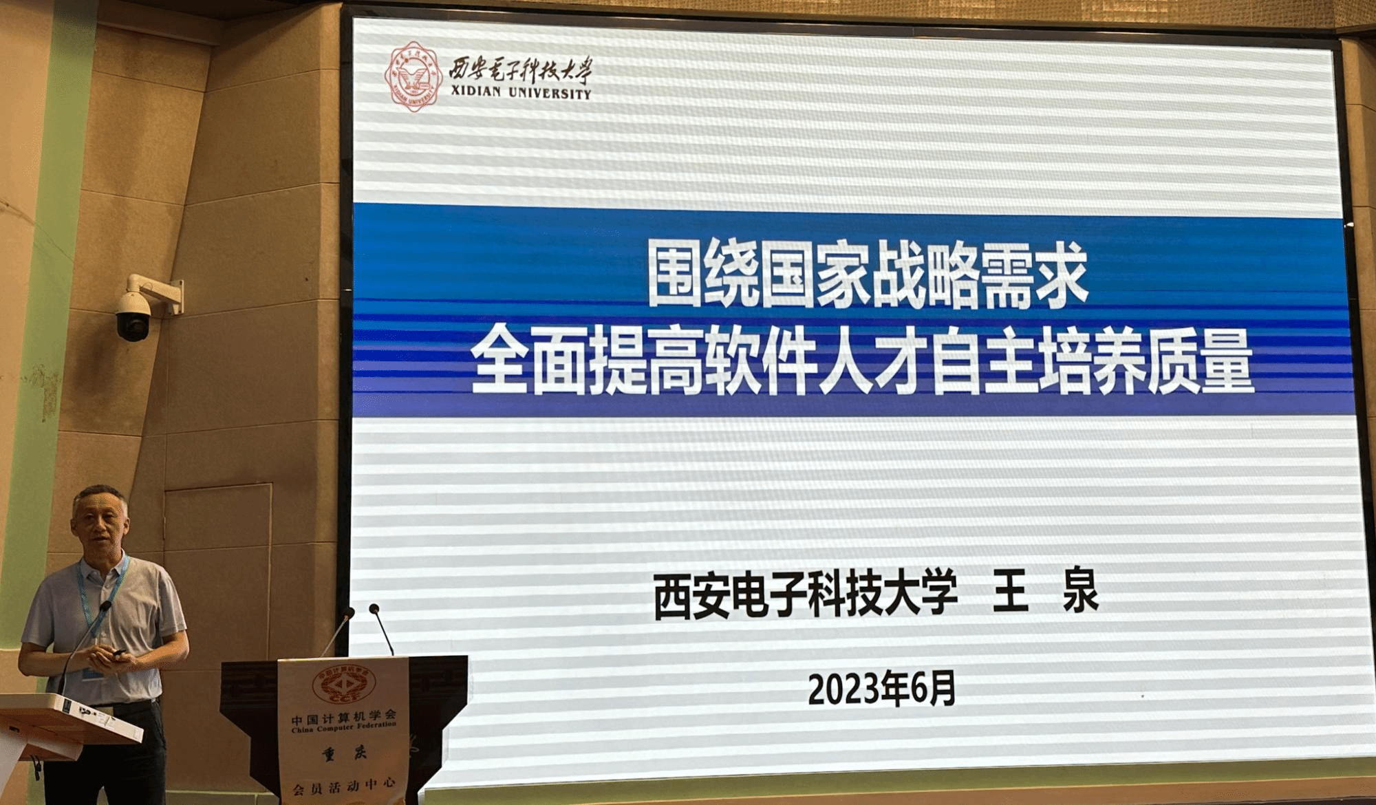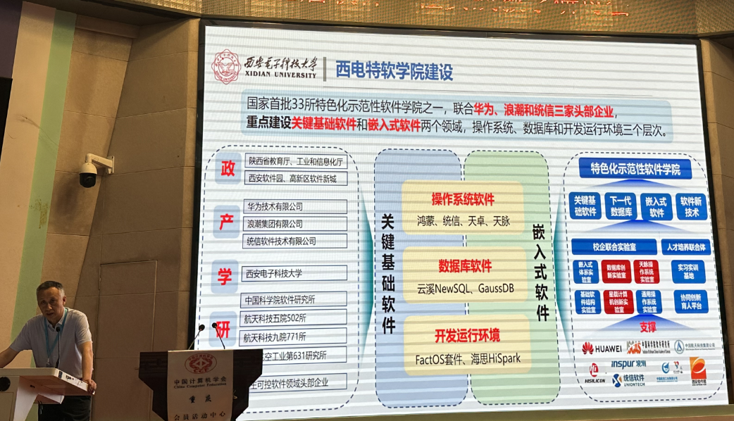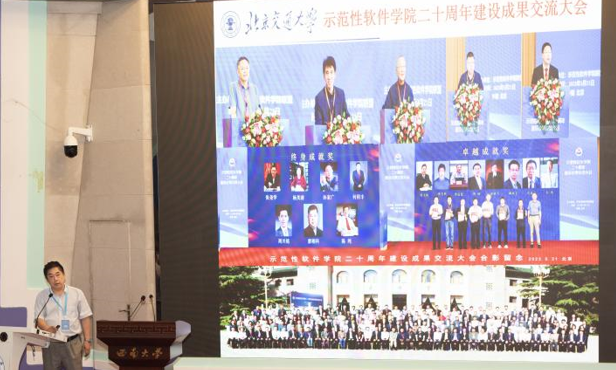 特邀报告环节邀请了国防科技大学毛新军教授、西南大学陈武教授、中软国际教育科技集团王晓华副总裁等做报告。毛新军教授在“教育部‘101计划’软件工程课程建设进展及成果”报告中介绍了自2022年教育部启动计算机领域本科教育教学改革试点工作计划以来开展的一系列工作,并对计划的使命和任务进行阐释,总结此过程中形成的一系列建设原则和质量要求,并分享取得的初步建设成果和部分教学资源。陈武教授以“面向智慧农业的新型软件人才培养模式探索”为主题,对立足培养面向智慧农业的新型软件人才、探索软件工程特色人才实践创新培养模式等一系列多层次教学研究和改革进行了分享。中软国际教育科技集团王晓华副总裁以“新时代背景下软件工程专业实践教学模式的探索”为主题,分享了中软国际教育科技集团在助力软件工程专业实践教学方面的理念。