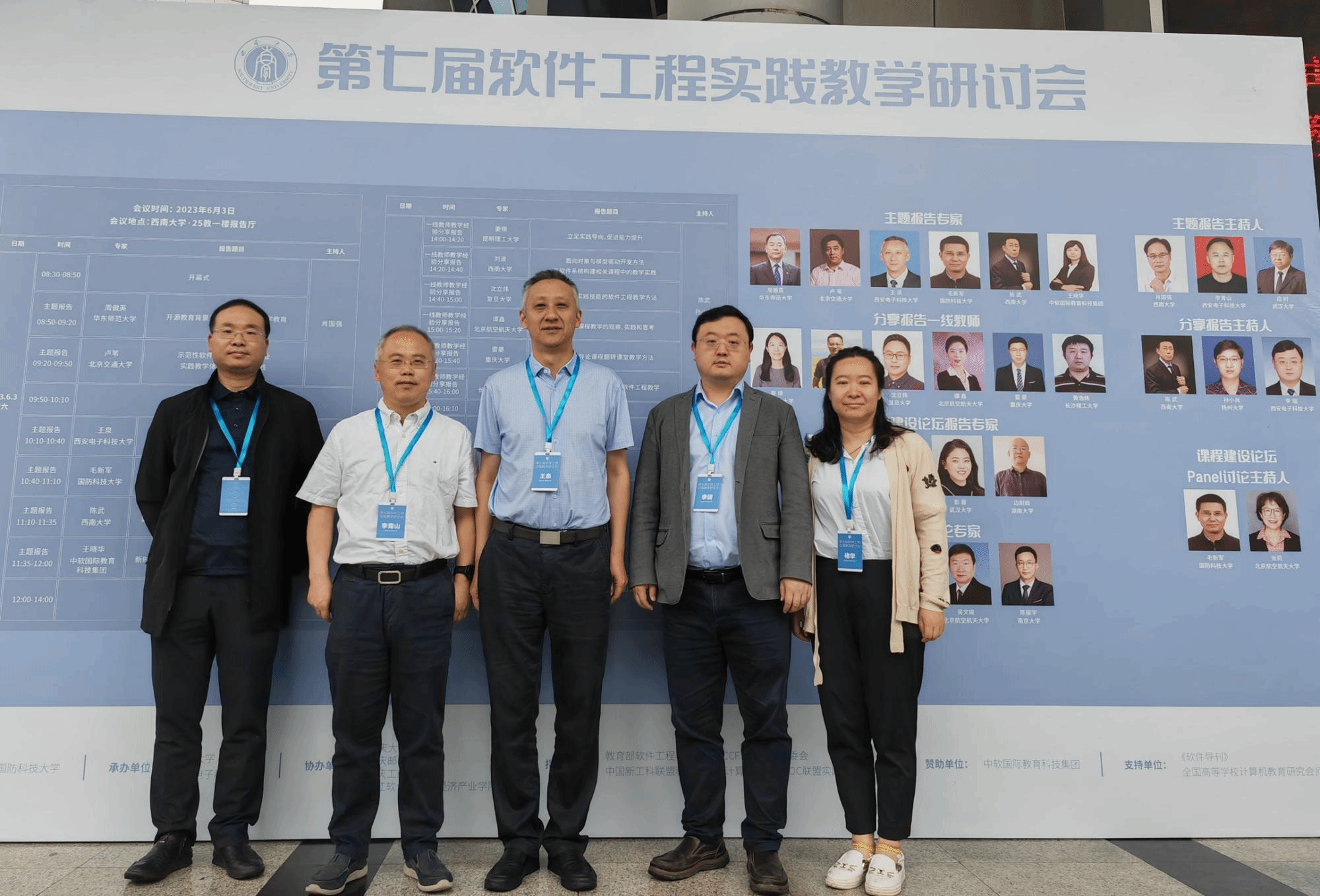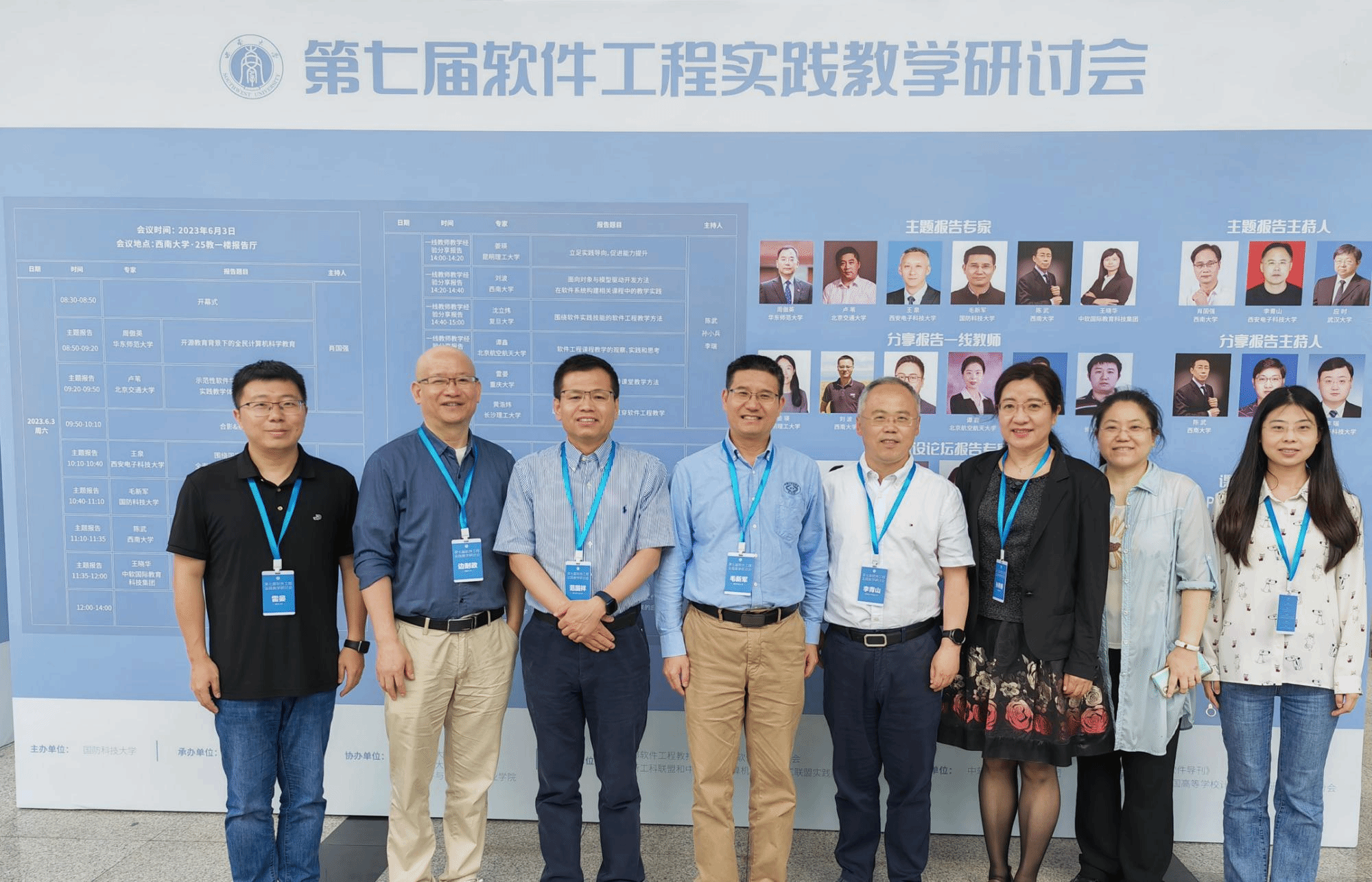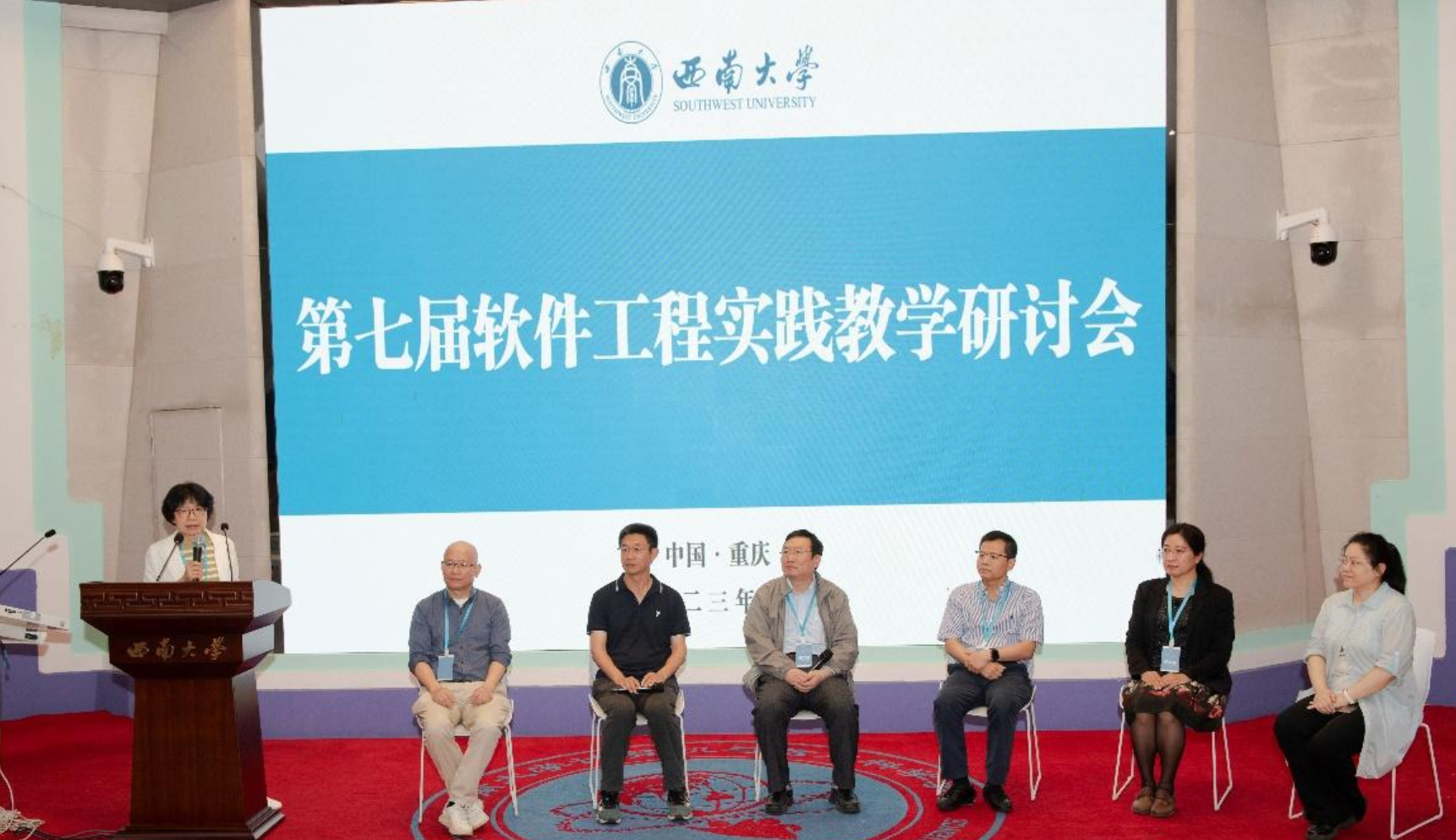 (通讯员 褚华)当前,随着软件复杂性的不断增长、智能化软件工程的快速发展以及软件系统在各行各业的持续渗透,软件工程教育教学、课程改革和人才培养面临着新的机遇和挑战。为了更好地促进软件工程教育教学方法,尤其是实践教学方法及其成果的分享,推动软件工程专业建设和教学改革,提升软件人才的培养质量和水平,2023年6月3日,第七届软件工程实践教学研讨会在西南大学成功召开。本次研讨会由国防科技大学计算机学院主办,西南大学计算机与信息科学学院和软件学院与必赢242net官网(国家示范性软件学院)联合承办。国防科技大学计算计学院毛新军教授、西南大学软件学院副院长陈武教授、必赢242net官网党委书记李青山教授担任会议联合主席。