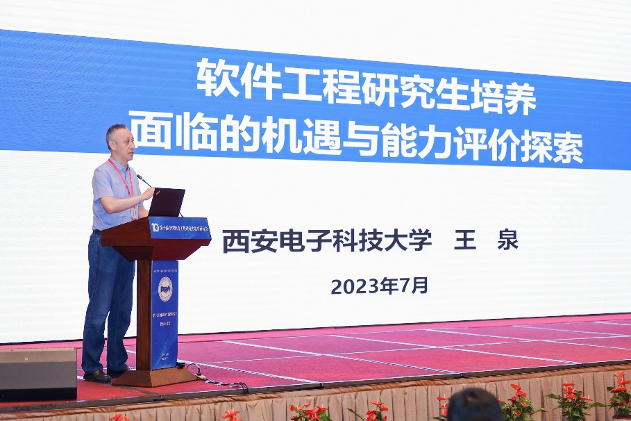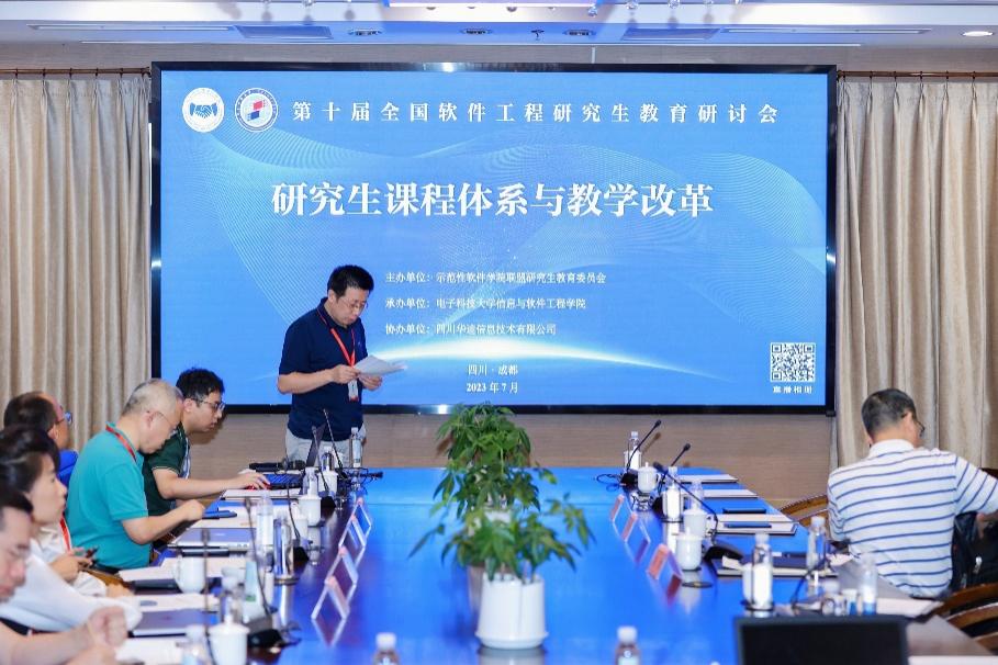 (通讯员 李瑞)2023年6月30日-7月1日由示范性软件学院联盟研究生教育委员会主办的“第十届全国软件工程研究生教育研讨会”在成都成功举办,来自全国高校的近150名校院领导、教师与研究生管理人员参加了本次会议。必赢官网王泉副校长、必赢242net官网(示范性软件学院)党委书记李青山、副院长李瑞、软件工程系青年教师蔺一帅作为学校代表参加了本次研讨会。王泉副校长受大会邀请作了主题报告。