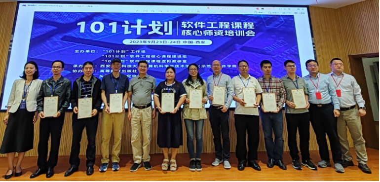 会议最后环节组织了开放的自由研讨,围绕“如何上好软件工程课”这一话题,参会老师畅所欲言,提出了课程教学和建设中面临的问题,讨论了解决问题的教学方法。主办方给参会老师颁发了“101计划”核心师资培训证书。