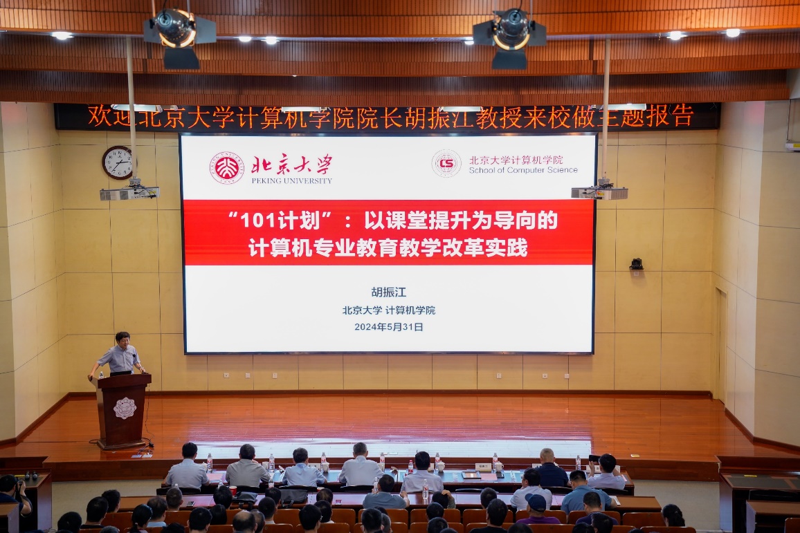 (通讯员 张亚菲)5月31日,应必赢242net官网、本科生院、校人才工作办公室邀请,教育部计算机“101计划”工作组组长、北京大学计算机学院院长胡振江教授来校在南校区行政楼210报告厅为师生作题为“101计划:以课堂提升为导向的计算机专业教学改革实践”的专题报告。