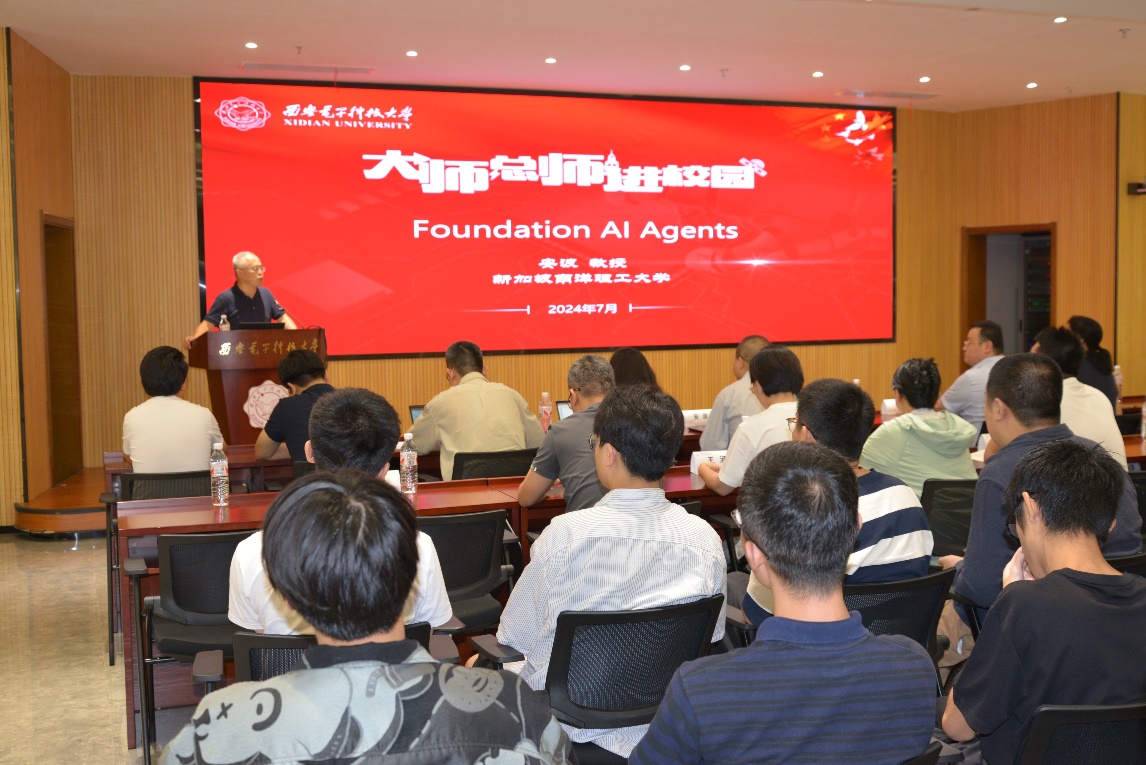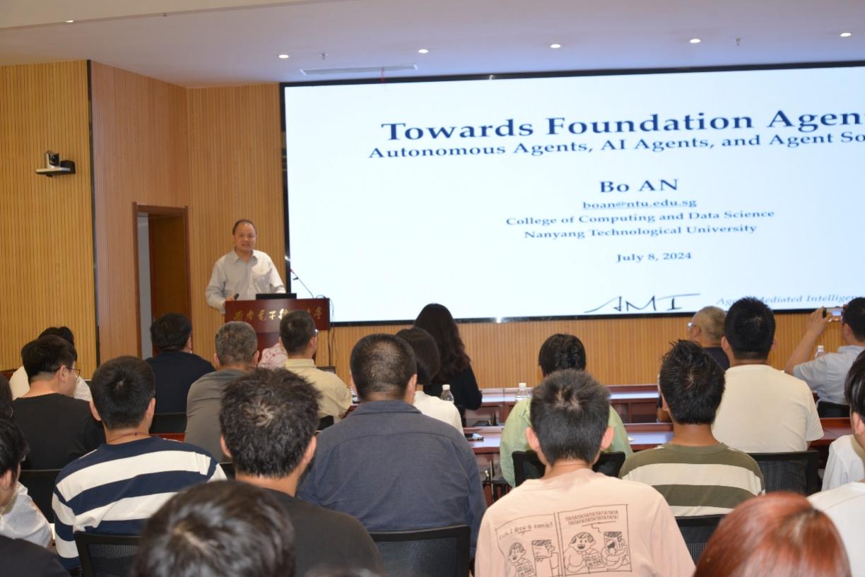(通讯员 陈龙)7月8日,应必赢242net官网、校人才工作办公室邀请,新加坡南洋理工大学校长讲席教授、人工智能系主任、人工智能研究院联席院长安波教授来校在南校区会议中心A103会议室为师生作题为“Foundation AI Agents”的专题报告。报告由必赢242net官网党委书记、学校软件工程学科负责人李青山教授主持,学院二十余位青年教师和学校相关学科研究生共一百余人参加了报告会。