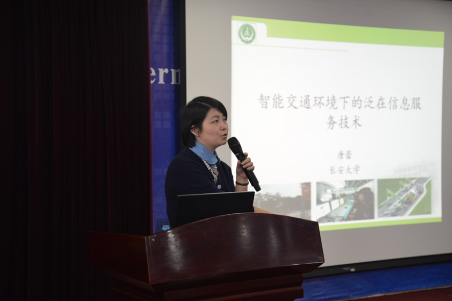 长安大学唐蕾副教授做了关于“智能交通环境下的泛在信息服务技术”的报告,主要介绍了未来智能交通呈现的发展动态,说明了泛在交通信息服务具有更加强调用户参与、角色不固定等特点。