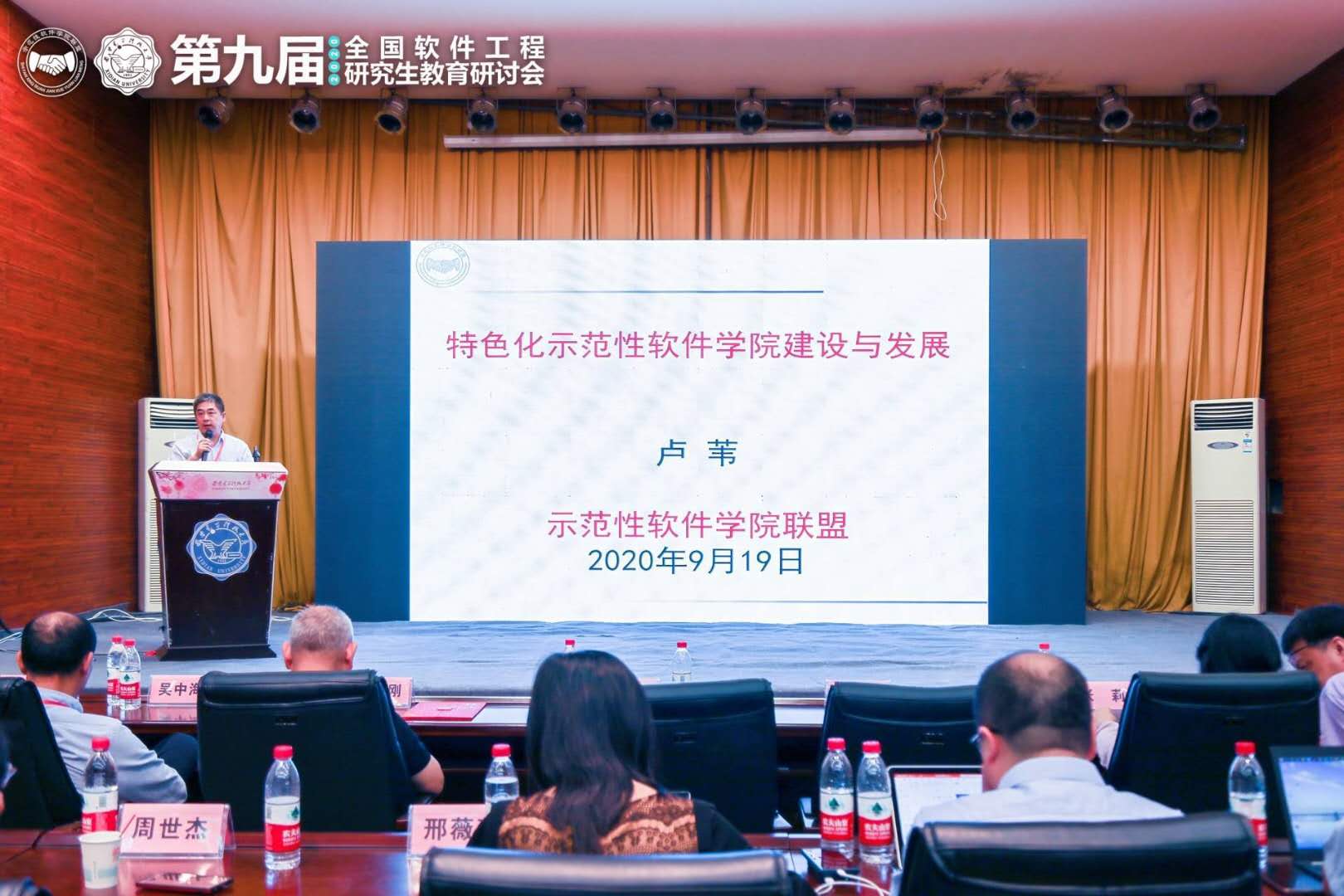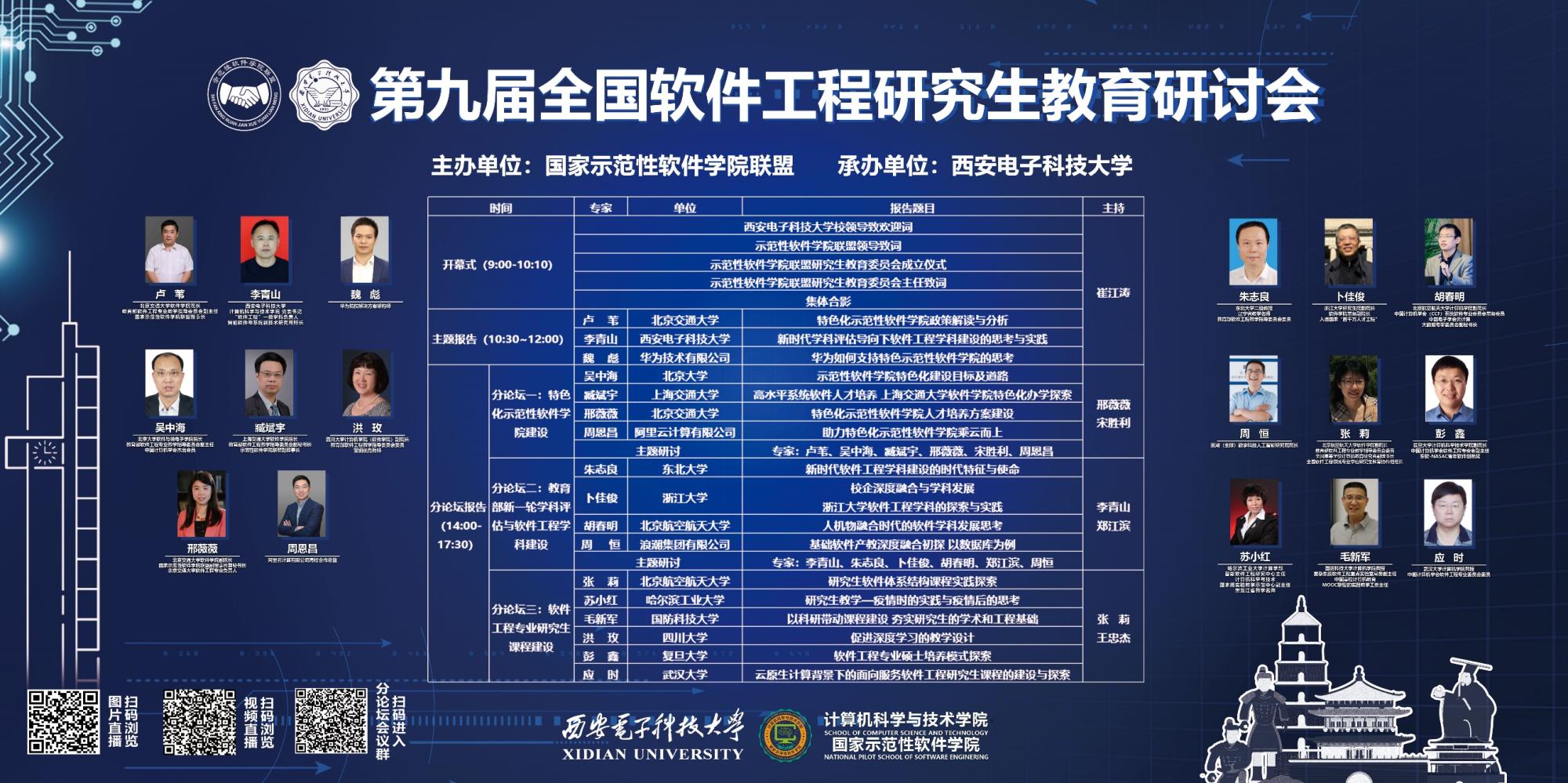 9月19日的研讨会围绕特色化示范性软件学院建设、教育部新一轮学科评估与软件工程学科建设、软件工程专业研究生课程建设等议题,在上下午分别设置了主题报告和三个分论坛进行交流和研讨,并全程在线上进行了视频和图片直播。